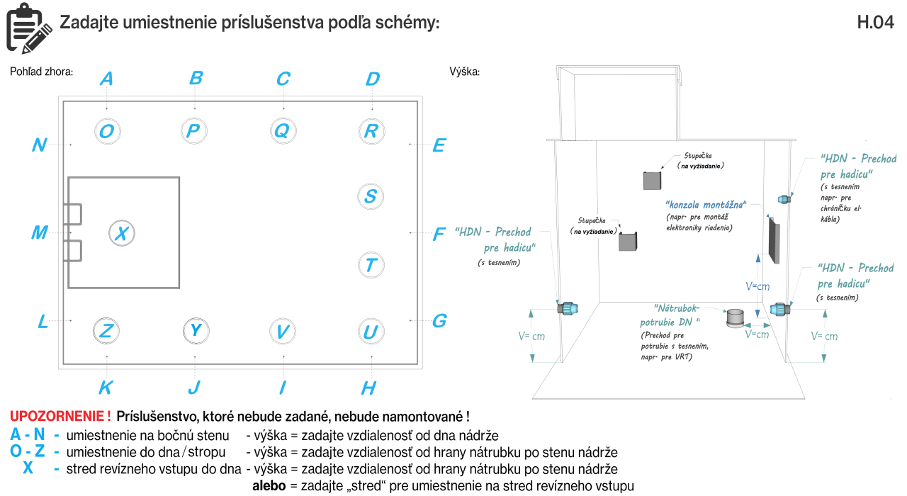 - na požiadavku montáž nátrubku s tesnením DN32 - DN250 alebo prechod pre hadicu HDN20 - HDN110, priemer a umiestnenie vyznačíte v nákupnom košíku po stlačení tlačidla "kúpiť"