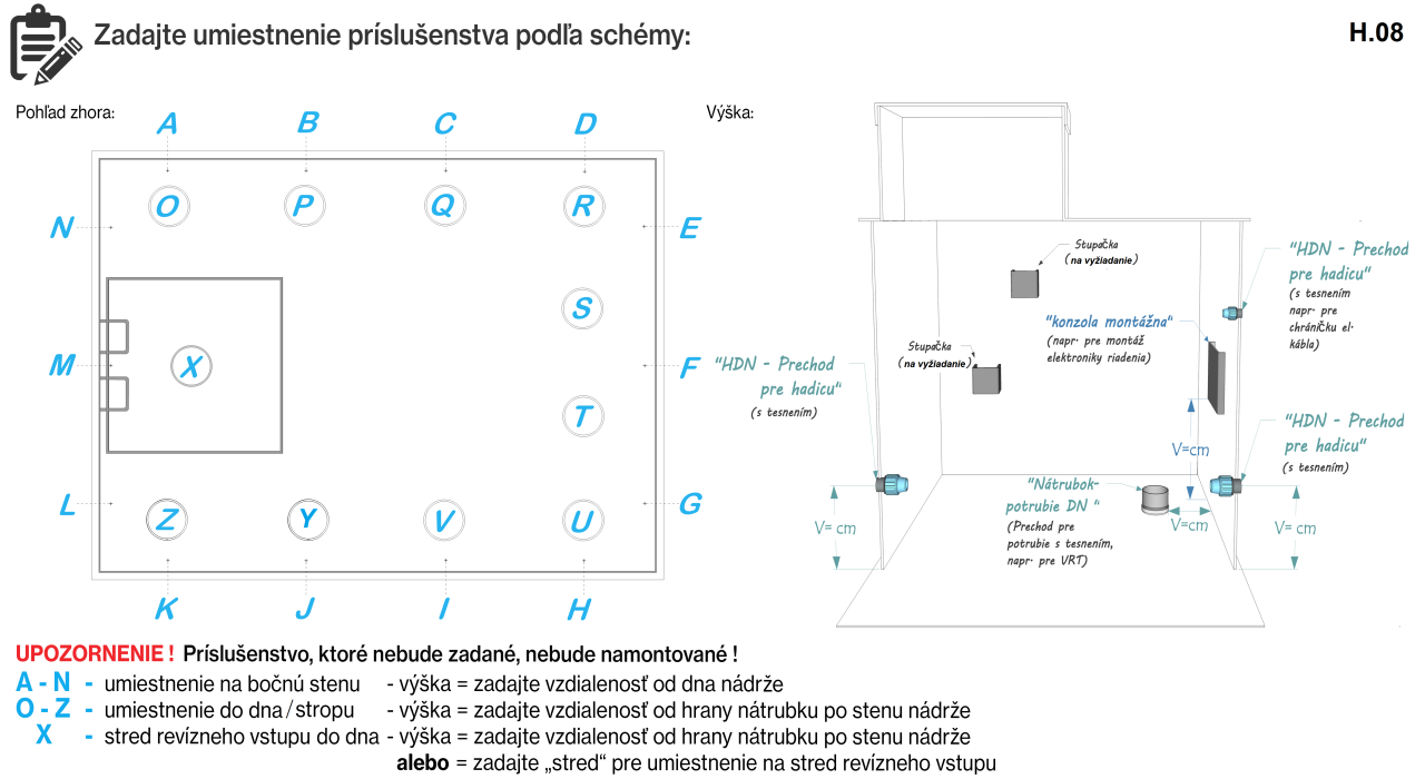 - na požiadavku montáž nátrubku s tesnením DN32 - DN250 alebo prechod pre hadicu HDN20 - HDN110, priemer a umiestnenie vyznačíte v nákupnom košíku po stlačení tlačidla "kúpiť"