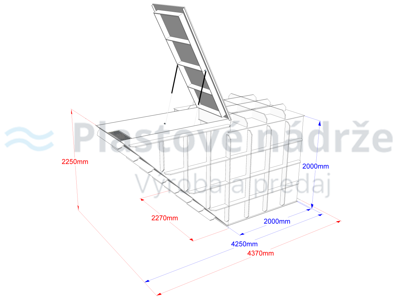 - 1ks plastová pivnica 2,0x2,0x2,25m pravá- vstup cez bočné schodisko