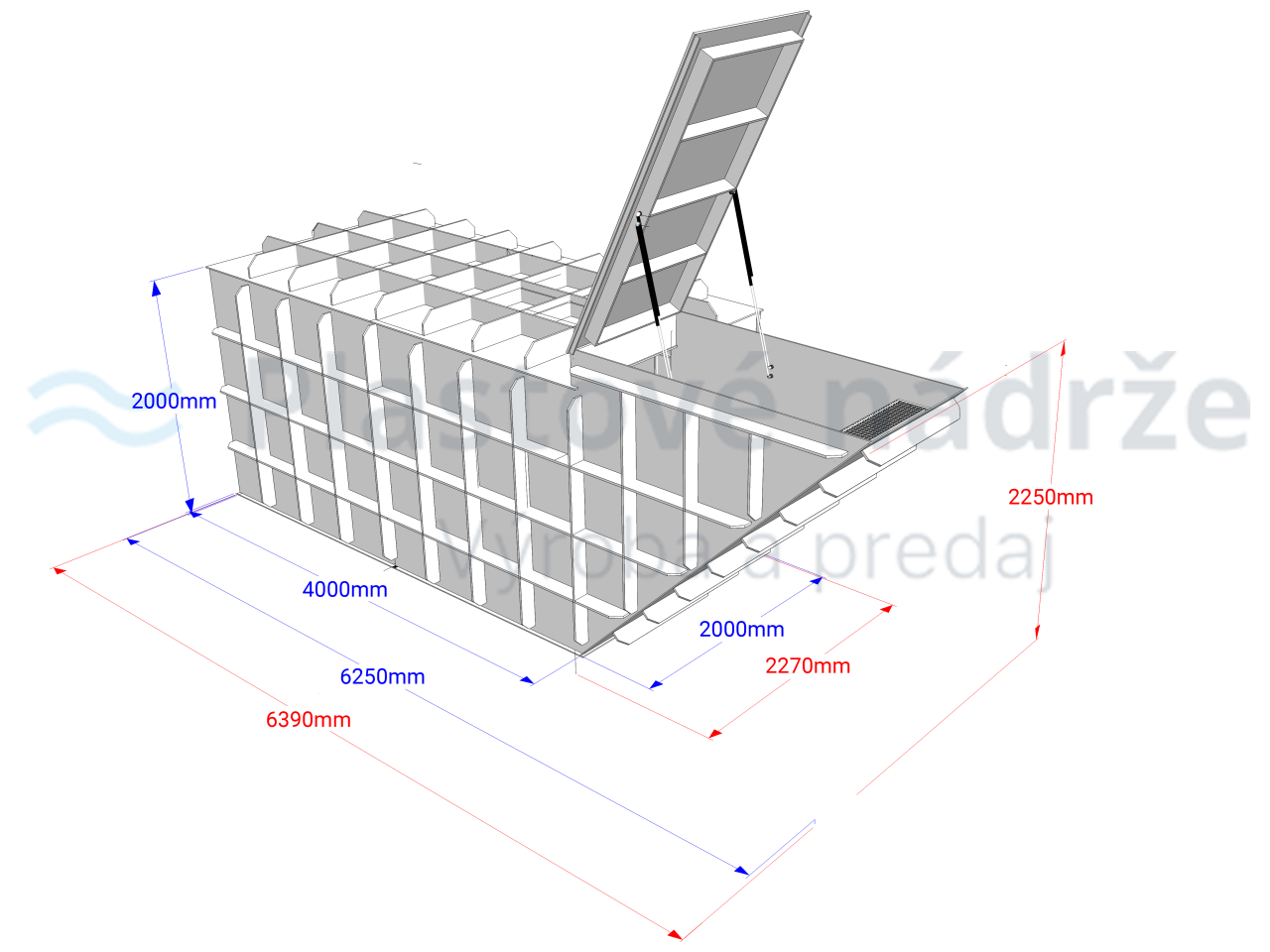 - 1ks plastová pivnica 4,0x2,0x2,25m ľavá - vstup cez bočné schodisko