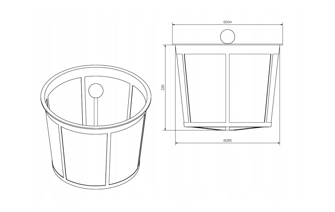 Rozmery: Ø 300 mm, výška 240 mm