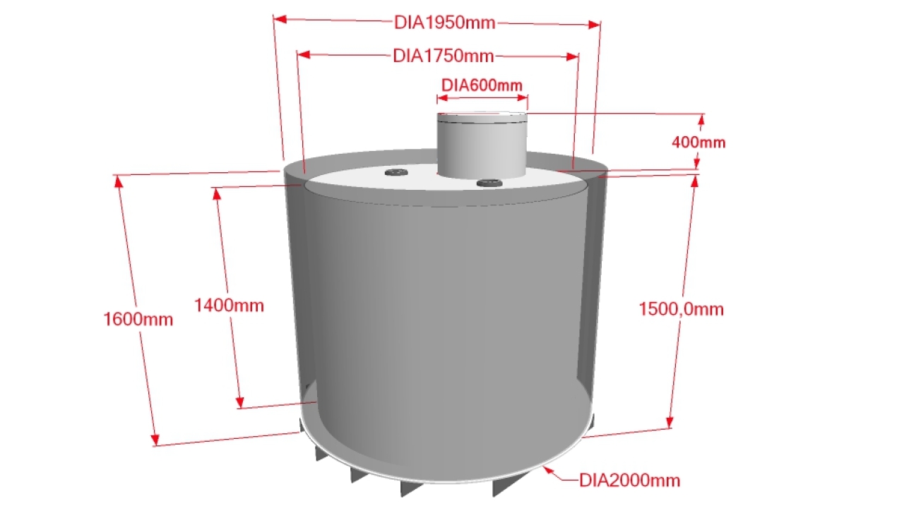 Plastová retenčná nádrž pre obetónovanie 3,5m3 s dvojitým plášťom je ideálna na zachytávanie úžitkovej vody alebo ako žumpa pre obetónovanie. Dvojitý plášť slúži ako šalovací prvok pre rýchle osadenie do podložia bez zdĺhavej prípravy šalovacieho debnenia a taktiež úsporu použitého množstva betónovej zmesi. Vonkajší plášť je vyvýšený a slúži ako šalovací prvok pri betonáži stropnej časti nádrže. Nádrž je vhodná k zachytávaniu úžitkovej vody, splaškových vôd alebo na rôzne chemické látky podľa chemickej odolnosti pre polypropylén. Nádrž je určená pre zložitejšie geologické podložia s výskytom spodnej vody, ílovité a iné nepriepustné alebo málo priepustné podložia, svahovité pozemky, miesta s prejazdom vozidiel alebo pri nutnosti osadenia nádrže hlbšie pod terén. Pred osadením sa nádrž musí dodatočne previazať v medzipláští cez vystuženie dna a taktiež cez strop nádrže. Nádrž sa osadí na čerstvé betónové lôžko, súmerne z napúštaním nádrže vodou sa priestor medzi plášťami naplní betónovou zmesou max. po hornú hranu vonkajšieho plášťa, ktorý je vyvýšený nad úroveň stropu, zároveň tak prebehne betonáž stropnej časti nádrže.