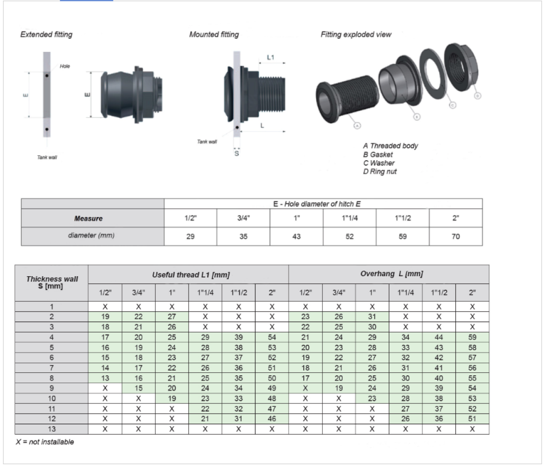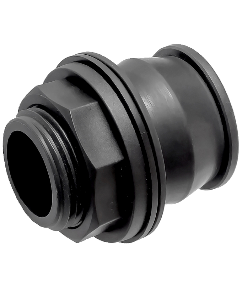 Závitová PP priama prechodka nádrže s EDPM tesnením, k dispozícii vo velkostiach 1-2 "