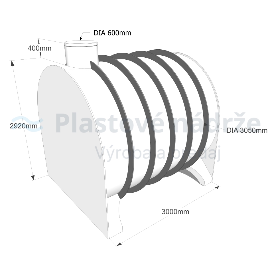 Plastová nádrž na pitnú vodu 18500l samonosná podzemná je vyrobená z vysokokvalitného polypropylénu určená ako zberný zásobník, rezervoár pre stály styk a uskladnenie pitnej vody, prípadne pre uskladnenie sypkých materiálov - potravinársky priemysel. Nádrž je určená pre uloženie pod zem na zhutnené štrkové lôžko alebo železobetónovú podkladovú platňu a následne napustenie a obsypanie štrkom jemnej frakcie, prípadne štrkopieskom. Vďaka technológií vonkajšieho vystuženia rebrami nádrž nie je potrebné obetónovať. Nádrž je celoplastová, preto zaručuje neobmedzenú životnosť. Pre prístup slúži revízny komín o priemere 0,60m a výške 0,40m a je uzavretý plastovým pochôdznym poklopom.